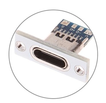 Zeer handig om een USB-C aansluiting te maken in uw behuizing of voor op een breadboard. Heeft aan de soldeerzijde 4 aansluitingen zodat u zowel data als voeding kunt aansluiten.